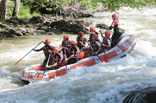 Llegó el día R. ¿Por qué R? Porque hoy nos toca el ¡¡¡raaaaaaaftiiiinnggg!!! Madrugamos un poquito más que ayer para poder coger el autobús a las 9 y así dirigirnos a Llavorsí, pueblo dese el cual comenzaremos nuestra aventura fluvial. Según vamos bajando con el autobús hacia el pueblo vamos acompañando el río por el que vamos a navegar y ya podemos comprobar que es un río rápido y que baja bastante agua. La imaginación comienza a funcionar y ya nos vemos remando a favor de la corriente y subiendo y bajando por los rápidos del río Noguera Pallaresa.